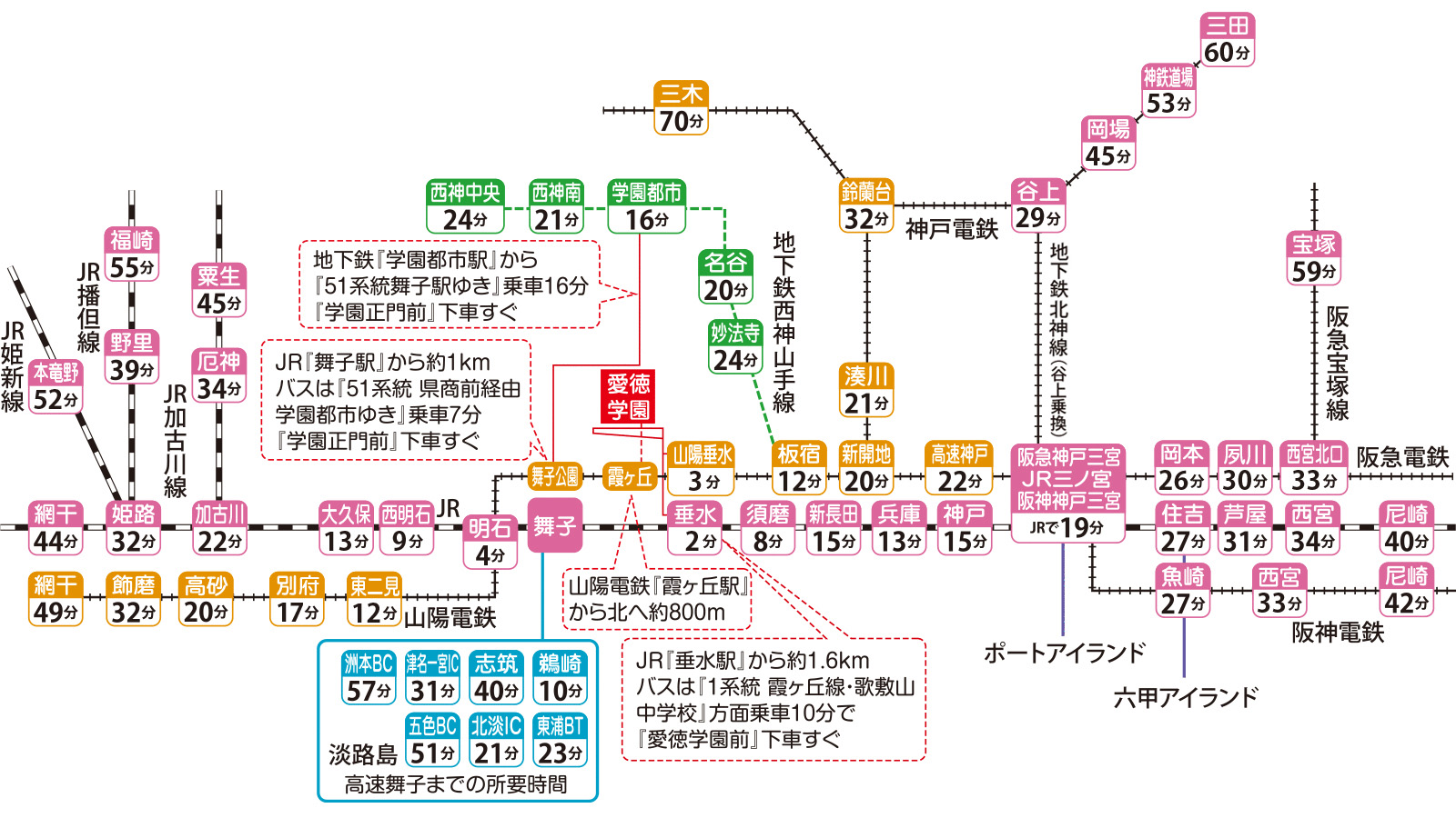 高津橋西新町明石駅西口神姫バス停ローソン前松が丘4丁目バス停朝霧駅前学校