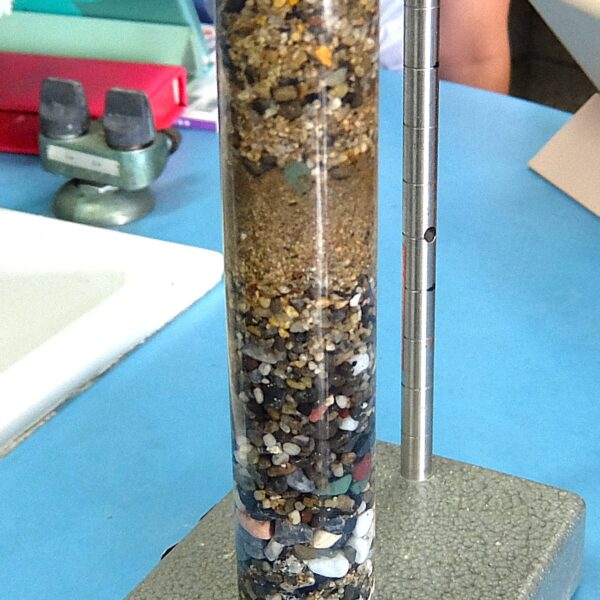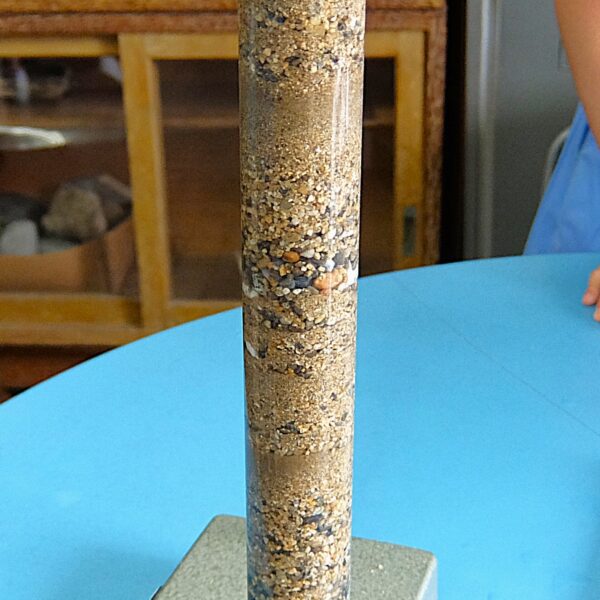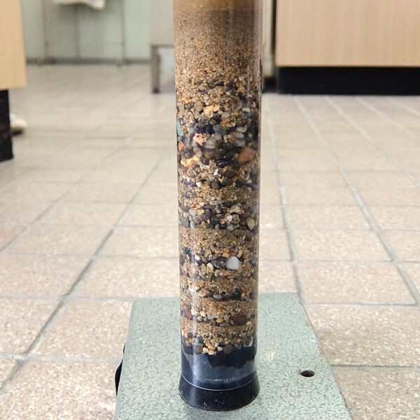 見事につぶの大きさによって分かれた縞模様 ~地層~ が現れました。