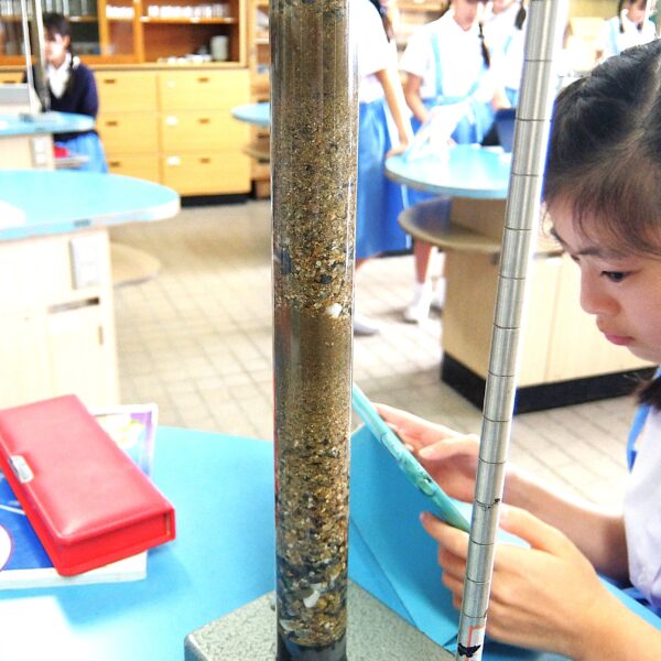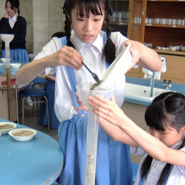 実際には、想像もつかないような量の土砂と悠久の時が私たちの踏みしめる大地をつくりあげたわけですが、大きな地球の謎にこうして小さな理科室の一角で迫れるのが実験の楽しさですね。