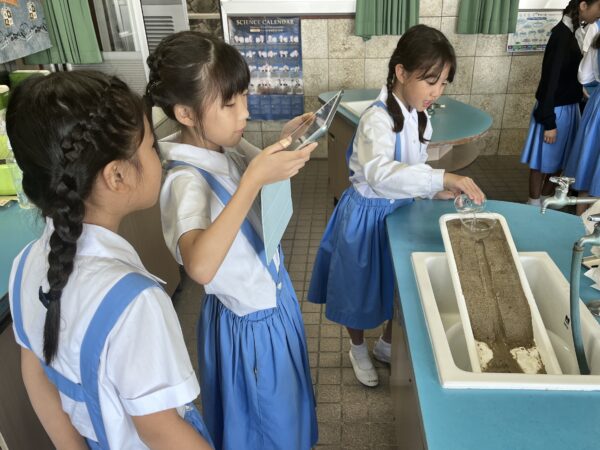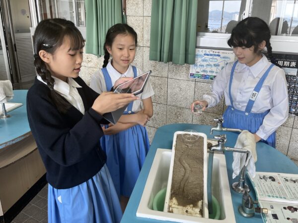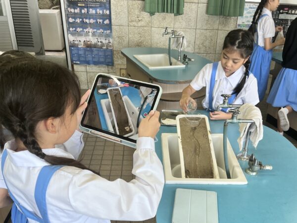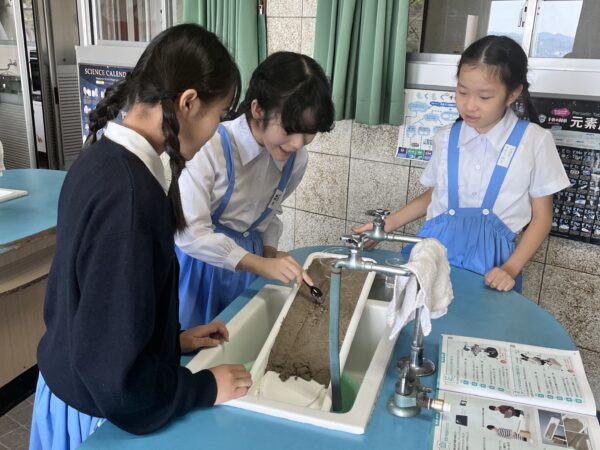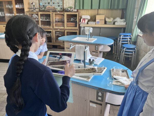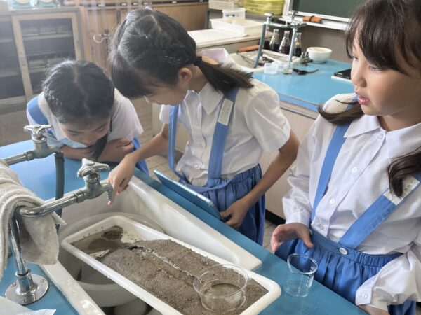5年生が理科「流れる水と土地」の学習で、川について学んだ際、川の上流と下流の姿の違いを生んでいるのが水の力なのではと予想しました。