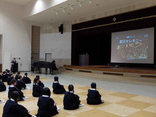 そのあと講堂に移動して、震災セレモニーをおこないました。