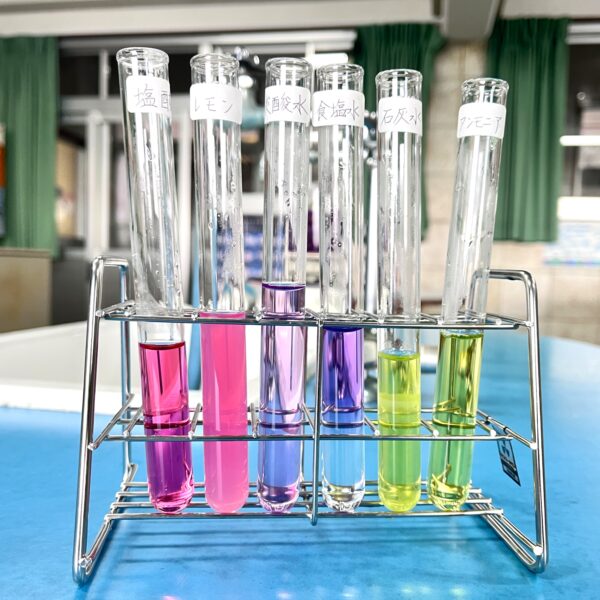 いろいろな性質の違いについて調べてきましたが、水溶液は酸性とアルカリ性、中性に分けられることもそのひとつ。見分ける方法としてリトマス紙を使い、さらに詳しく調べる方法としてBTB溶液でも実験してみました。