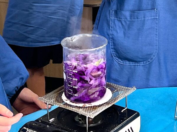 そして今回、家庭でもできる試薬としてムラサキキャベツ液の作成にチャレンジしました。