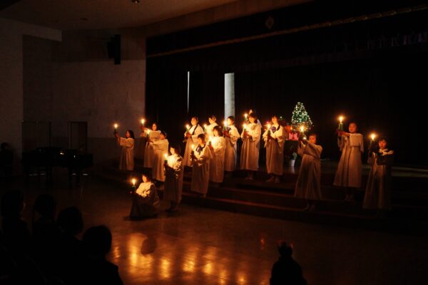 続く6年生によるキャンドルサービスでは、やわらかなろうそくの光による荘厳な空気の中、力強いメッセージが届けられました。