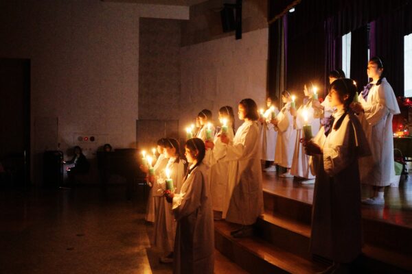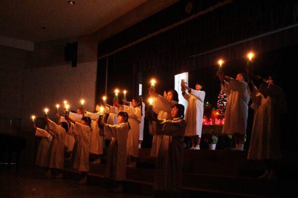 続く6年生によるキャンドルサービスでは、やわらかなろうそくの光による荘厳な空気の中、力強いメッセージが届けられました。