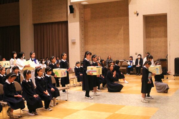 そして各学年ごとに用意した、イエスさまへの感謝のお手紙とコツコツとためてきた献金や聖歌をお捧げしました。