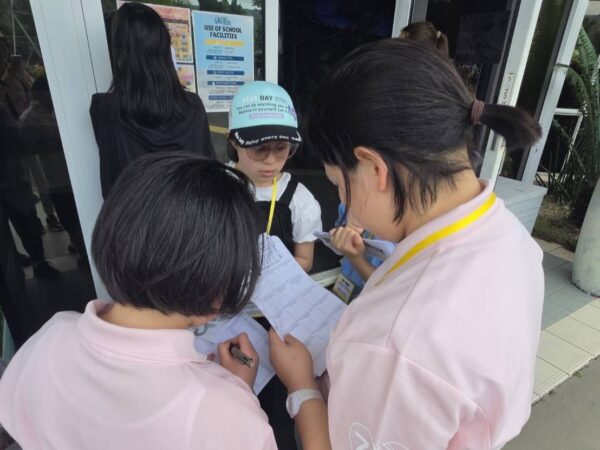 子どもたちはグループに分かれ、リストを手にキャンパス内を歩き回りながら、一つひとつ確認していきました。分からない英語表現があれば、仲間と協力したり、現地の先生やスタッフに積極的に質問したりしながら、答えを見つけていく姿がすばらしかったです。